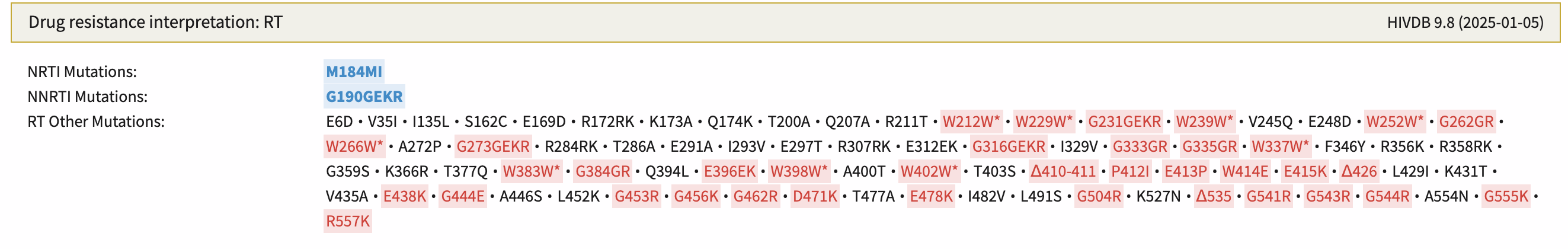 - learnt that Stanford HIVdb assumes mutation of different variants if