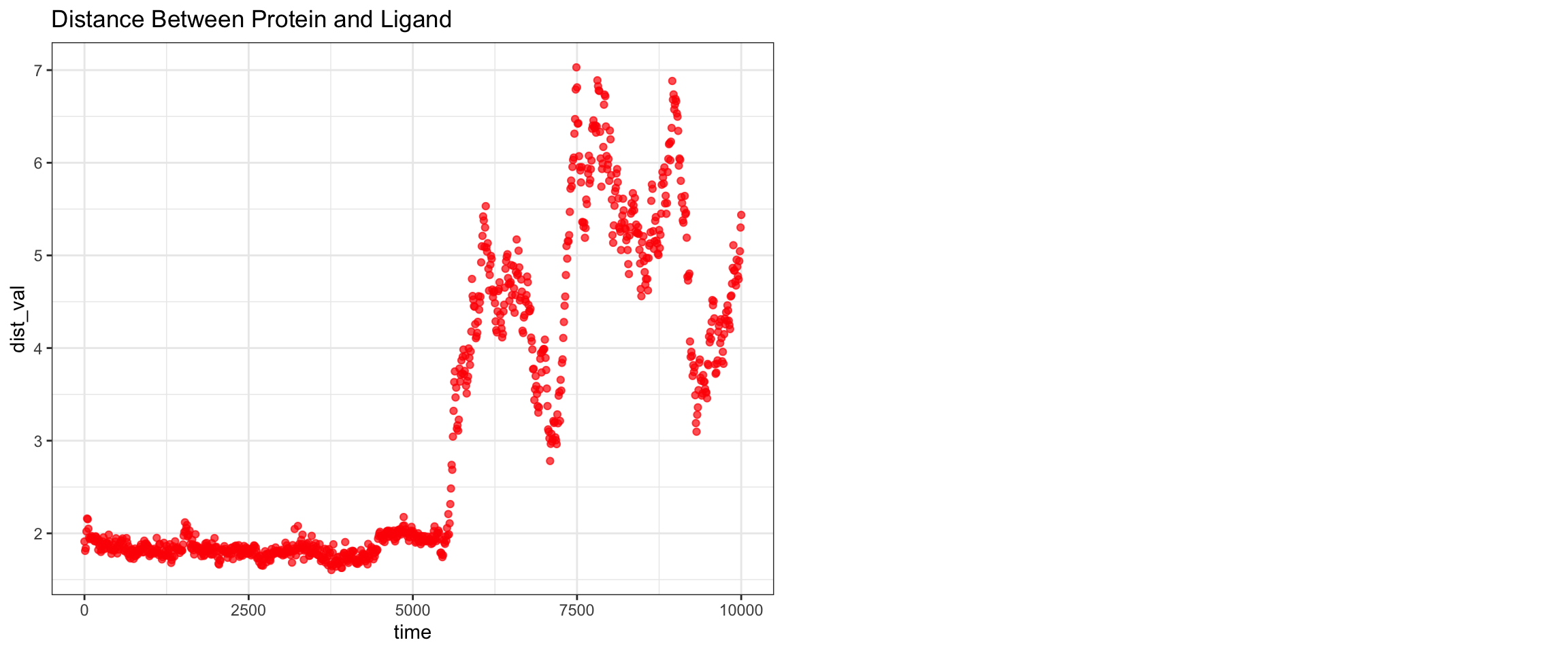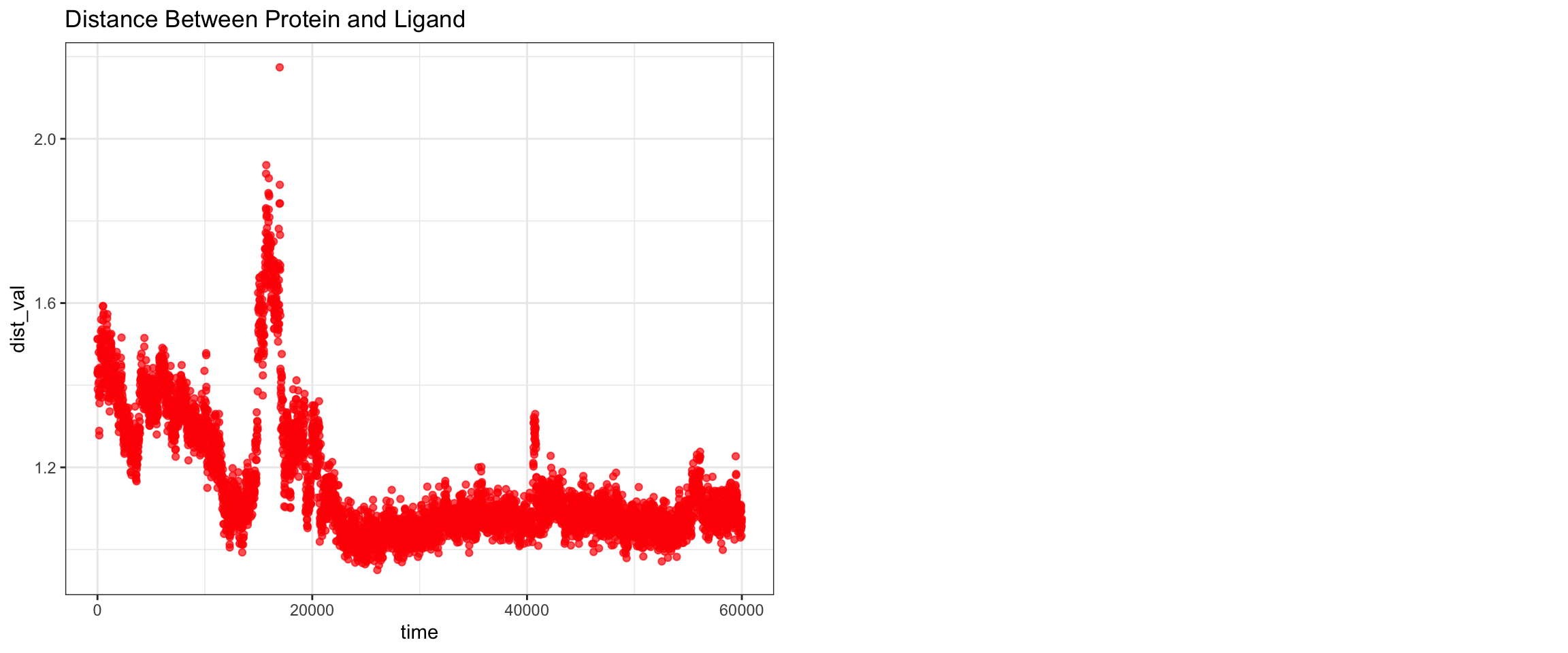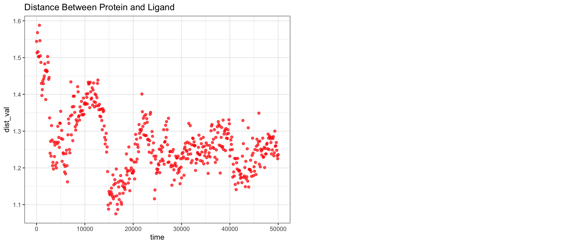 ggtitle("Distance Between Protein and Ligand")