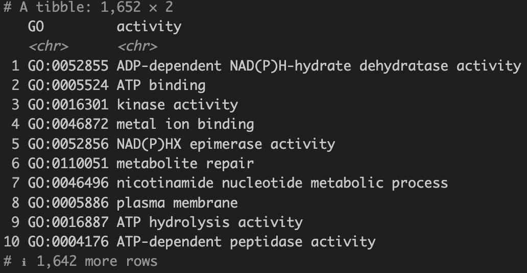 mutate(activity = str_extract(GO_raw, ".*(?= \\[GO)")) |>